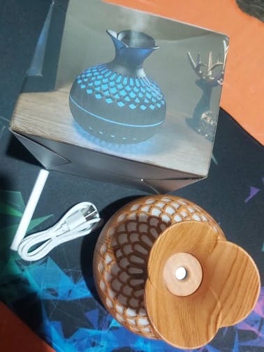 He probado otros humidificadores y este es muy bueno, tiene el tamaño justo y funciona muy bien, yo le echo aceites esenciales de jazmin y huele increible todo el dia